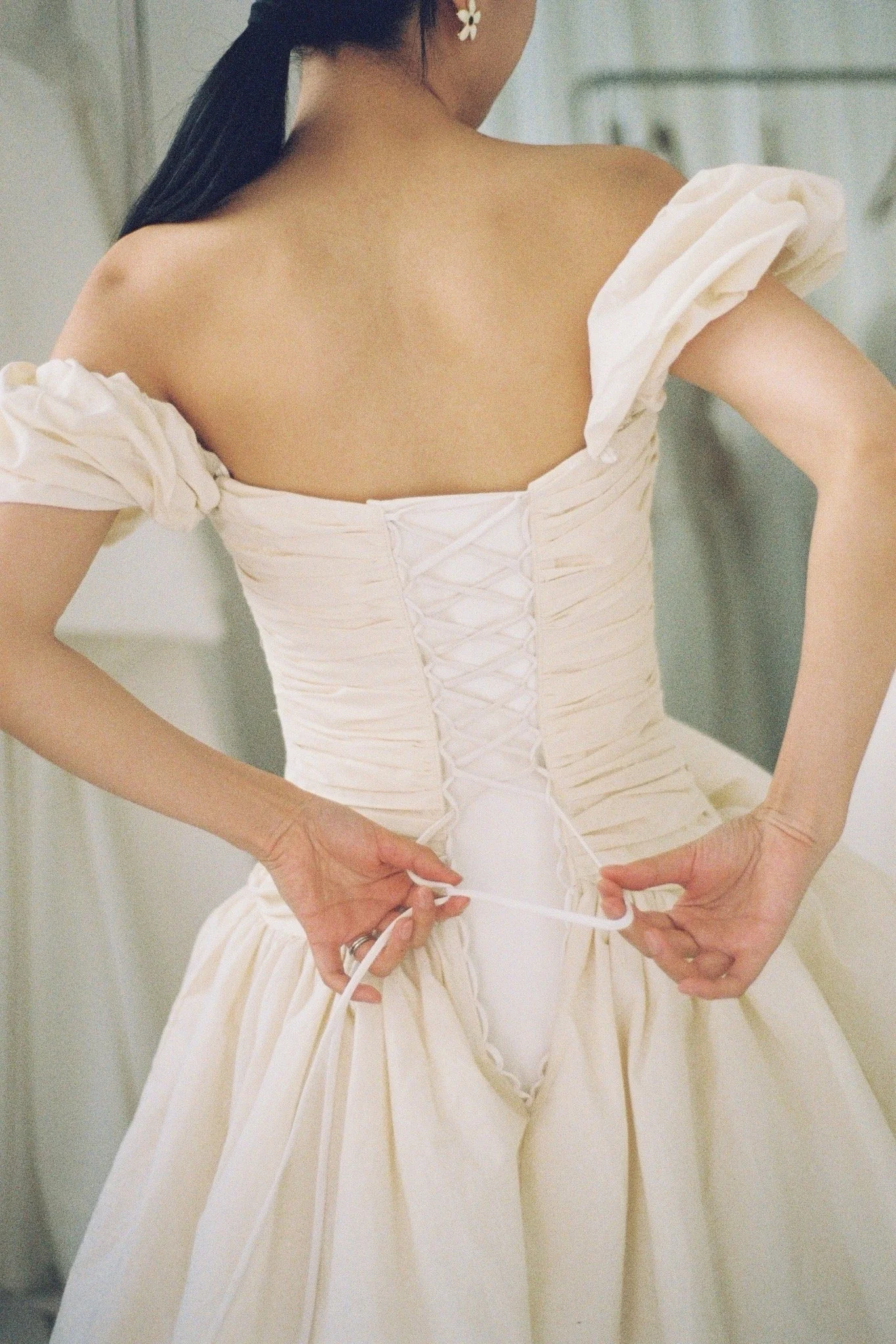 There is something magical about the way morning light rests on film. It softens every edge. It wraps around you like a memory. The gentle grain, the warmth in the tones, the way it catches the shimmer in your dress or the curve of a smile - it feels like something from a dream.